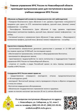 Главное управление МЧС России по Новосибирской области приглашает выпускников школ для поступления в высшие учебные заведения МЧС России